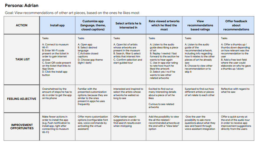 Mapping Adrian’s user journey revealed how an immersive museum visit could look like.